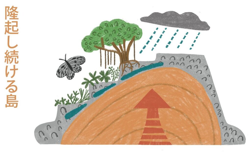 また、海の中から持ち上げられたサンゴ礁は、石灰岩という水を通しやすい岩でできています。島には大きな川がありませんが、地下水が豊富で多くの湧き水をもたらしています。これらの大地の動きと水の恵みは、喜界島ならではの自然や文化を生み出しました。まさに奇跡の島です。