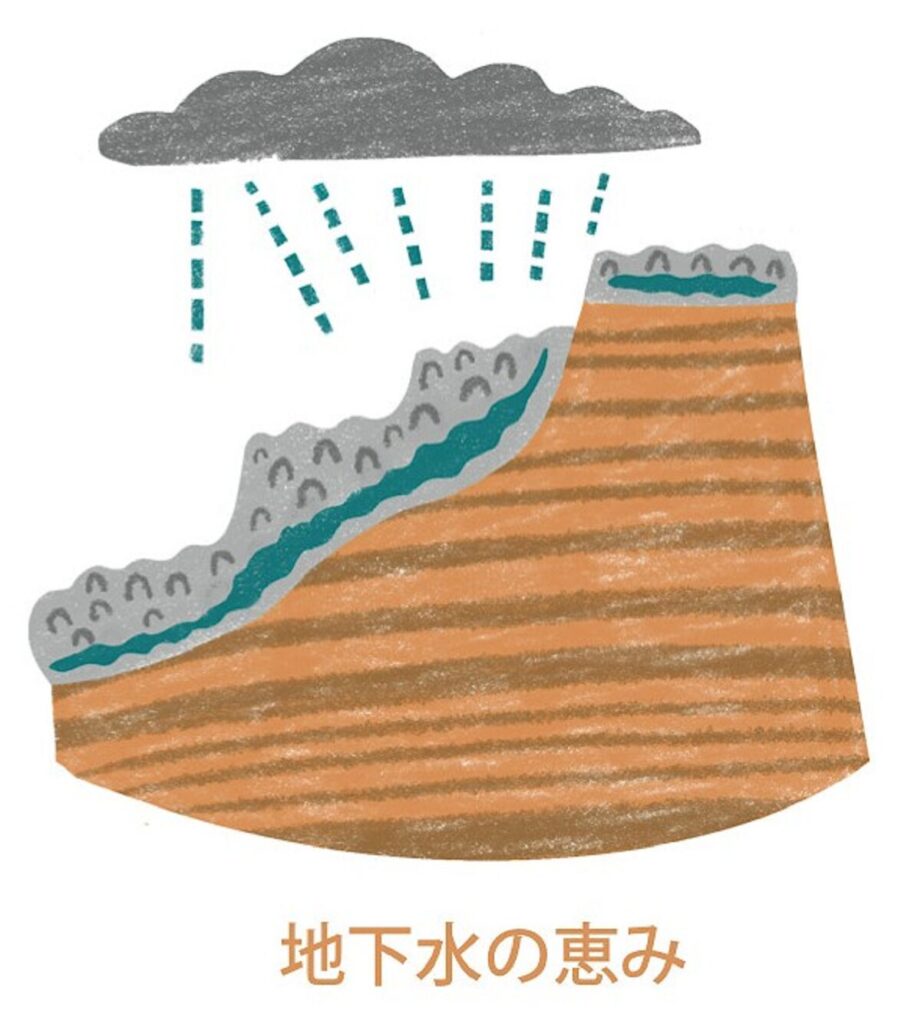 その昔、深い海底に砂や泥が交互に堆積し、砂と泥の縞模様の地層ができました。改定は、プレートの沈み込みに伴う隆起により、海底に堆積した地層と共に次第に浅くなっていきました。やがて海底は、サンゴなどの生き物が棲むことができる温かい浅い海となり、サンゴ礁ができるようになりました。さらに隆起は続き、海から顔を出したサンゴ礁は陸(大地)となり、役10万年前以降に喜界島は次第に大きくなっていきました。その後も、海面が高い時期に水没した場所にはサンゴ礁が形成され、それらはさらに隆起していきました。陸上に顔を出したサンゴ礁は、時間とともに隙間が多く水を貯めやすく、また通しやすい石灰岩へと変わっていきました。島には大きな川がありませんが、この石灰岩のおかげで地下水が豊富で、多くの湧き水をもたらしています。これらの大地の動きと水の恵みは、喜界島ならではの自然や文化を生み出しました。喜界島は、まさに隆起する力が生み出した奇跡の島なのです。